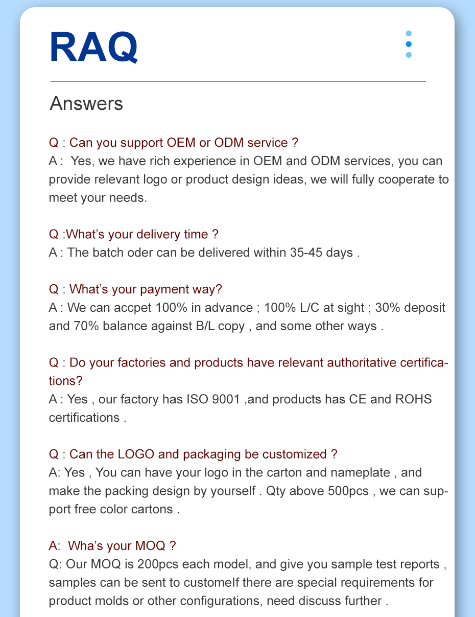 - Experienced Team: Over 200 employees, including 20 engineers, 50 technicians, 10 after-sale service workers, and 20 sales people who ensure our customers receive a full, one-stop service.